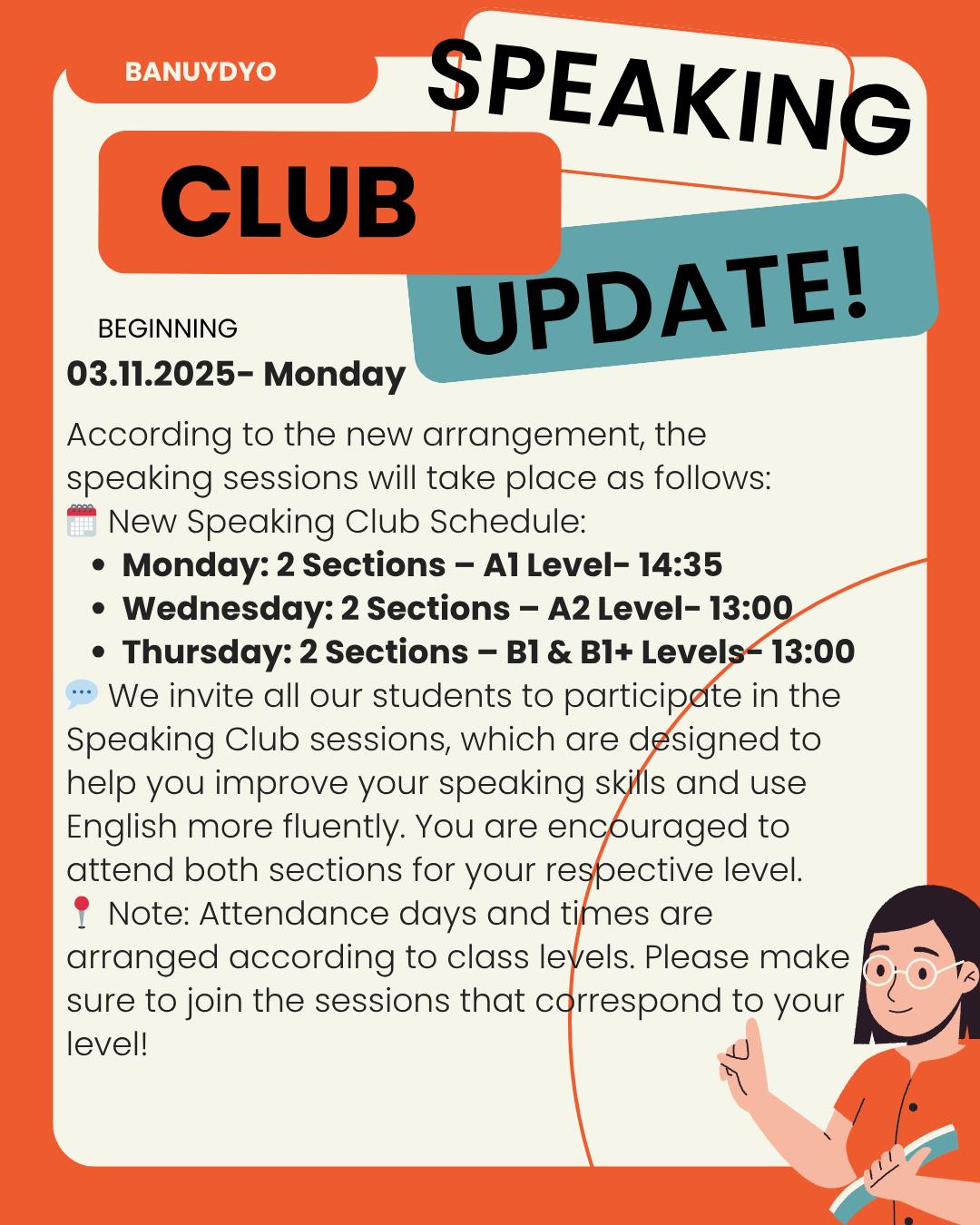 🗓️ New Speaking Club Schedule: