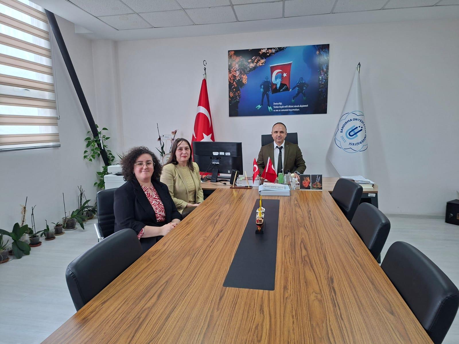 Yüksekokul müdürümüz Öğr. Gör. Türkan Yılmaz ile bölüm başkanımız Öğr. Gör. Cansu Dinç Ayaz Denizcilik Fakültesi’ne dekan vekili olarak atanan sayın Prof. Dr. Alper Kılıç’ı tebrik etmek için kendisini makamında ziyaret ettiler.