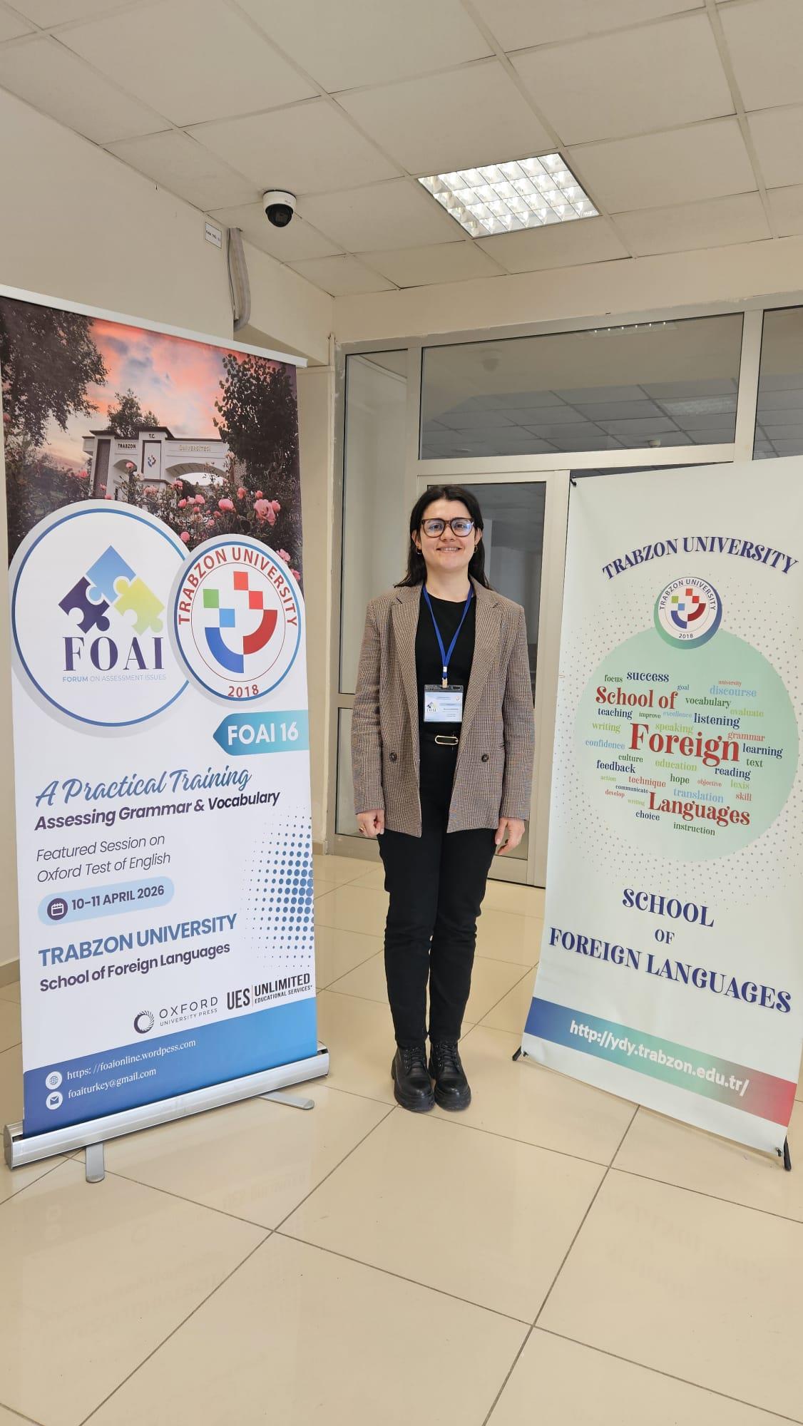 Trabzon Üniversitesi Yabancı Diller Yüksekokulu ev sahipliğinde 16.’sı düzenlenen Forum on Assessment Issues etkinliği 10-11 Nisan 2026 tarihlerinde Trabzon’da gerçekleşti. Yabancı dil eğitiminde ölçme-değerlendirme konu ve sorunlarına odaklanan, Türkiye’nin çeşitli üniversitelerinin yabancı diller yüksekokullarında görev yapan öğretim görevlilerinin katıldığı eğitime, Yüksekokulumuzu temsilen yüksekokul müdür yardımcımız Öğr. Gör. Dr. Burcu Karadaş katıldı.