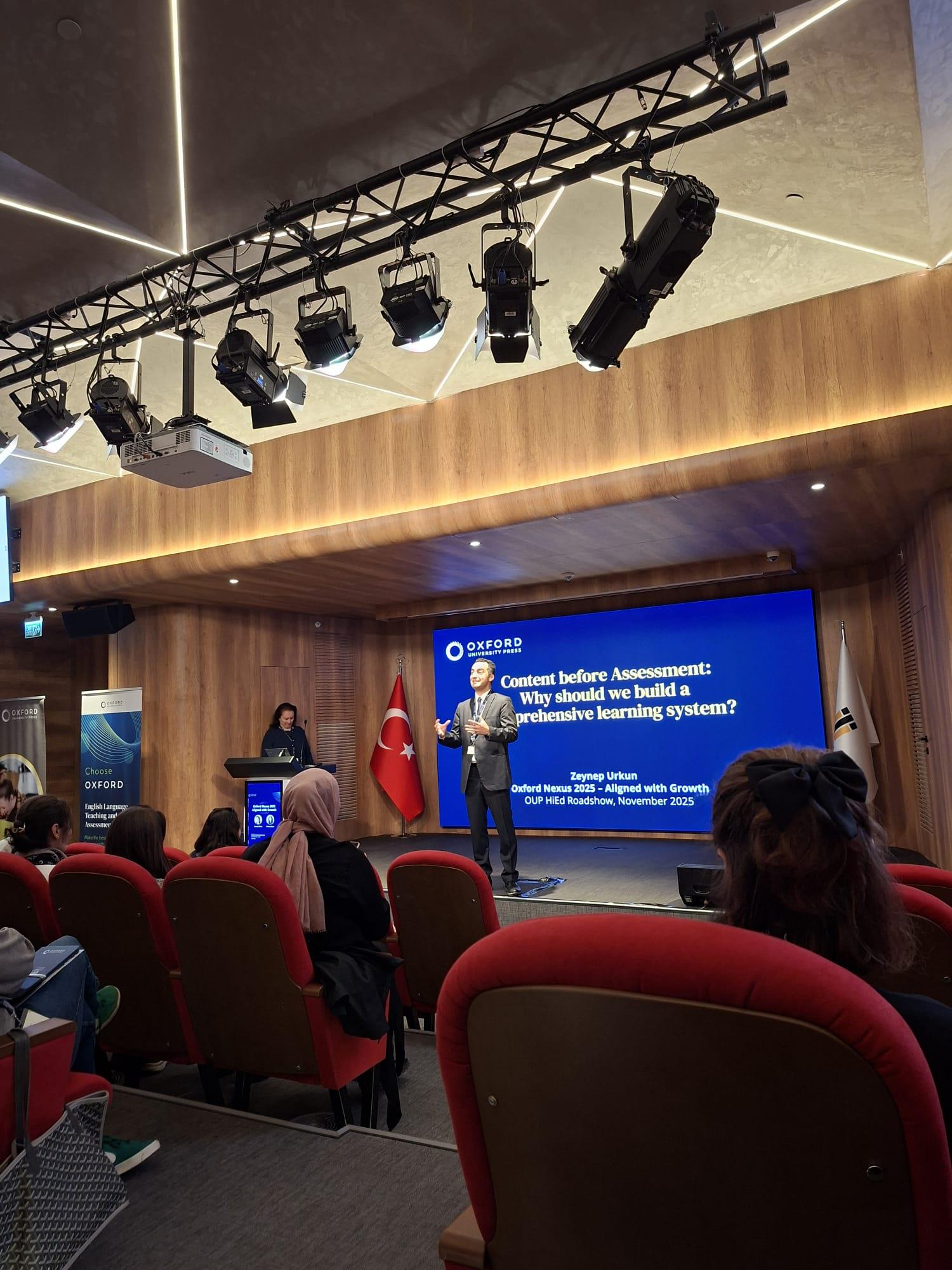 Bandırma Onyedi Eylül Üniversitesi Yabancı Diller Bölümü Bölüm Başkanı Öğr. Gör. Cansu DİNÇ AYAZ, 29 Kasım 2025 tarihinde İstanbul Ticaret Üniversitesi ev sahipliğinde Oxford University Press tarafından düzenlenen “Oxford Nexus 2025: Aligned with Growth – İstanbul” etkinliğine katılım sağladı. 2025 yılı eğitim trendlerinin mercek altına alındığı organizasyonda; ölçme-değerlendirme alanındaki güncel yaklaşımlar, sınav güvenilirliği için standardizasyon modelleri ve veri temelli karar alma süreçleri detaylıca ele alındı. Oxford uzmanlarının yürüttüğü oturumlar sayesinde, uluslararası iyi uygulama örneklerini ve kurumsal gelişimi destekleyen profesyonel araçları yerinde inceleme fırsatı bulduk. Etkinlik boyunca edinilen kazanımlar, yüksekokulumuzun kalite, akreditasyon ve ölçme-değerlendirme sistemlerini güçlendirmek adına stratejik bir vizyon sunmaktadır. Bu tecrübeler, eğitim standartlarımızı küresel düzeye taşıma hedefimiz doğrultusunda çalışmalarımıza doğrudan ve sürdürülebilir bir katkı sağlayacaktır.